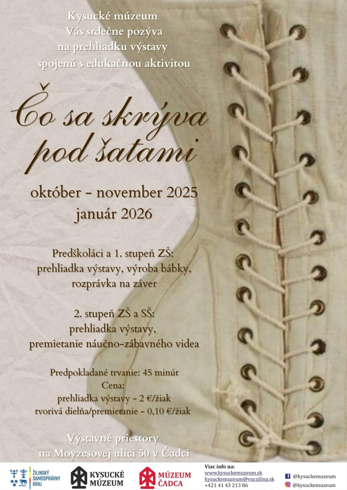 Výstava prevedie návštevníka naprieč históriou spodnej bielizne od bedrových rúšok až po negližé a umožní mu nahliadnuť pod šaty z obdobia od polovice 19. storočia po polovicu 20. storočia.