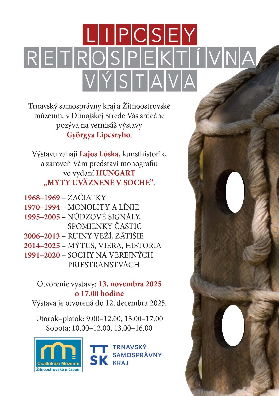 Trnavský samosprávny kraj a Žitnoostrovské múzeum, v Dunajskej Strede Vás srdečne pozýva na vernisáž výstavy Györgya Lipcseyho.