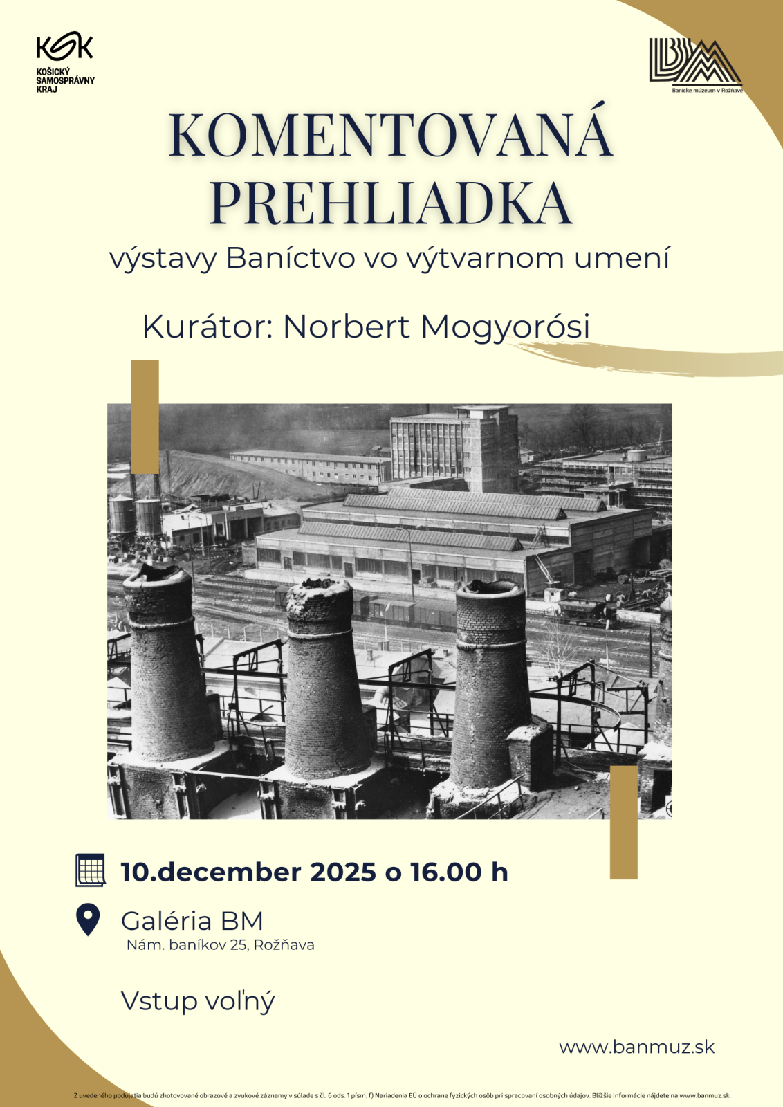 Komentovaná prehliadka sa uskutoční 10. decembra 2025 (streda) o 16.00 hod. v priestoroch Galérie Baníckeho múzea v Rožňave. Vstup na podujatie je voľný.