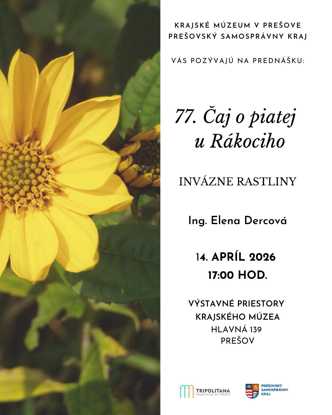 Prednáška botaničky Ing. Eleny Dercovej priblíži návštevníkom problematiku šírenia nepôvodných rastlinných druhov v našom regióne. Predstaví príčiny a dôsledky rastlinných invázií, ich vplyv na pôvodné druhy a ekosystémy, životné prostredie, zdravie aj hospodárstvo.