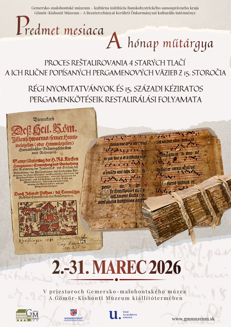 Predmetom mesiaca marec sú štyri staré tlače zo 16. a 17. storočia z knižnice múzea. Tieto vzácne tlače sú viazané v ručne popísaných pergamenových väzbách, ktoré pochádzajú až z 15. storočia. Knihy sú vystavené v štádiu reštaurovania v priestoroch Gemersko-malohontského múzea od 2. do 31. marca 2026. Návštevníci múzea tak majú možnosť prehliadnuť si ich v procese ich reštaurovania. Reštaurovanie podporil z verejných zdrojov Fond na podporu umenia.