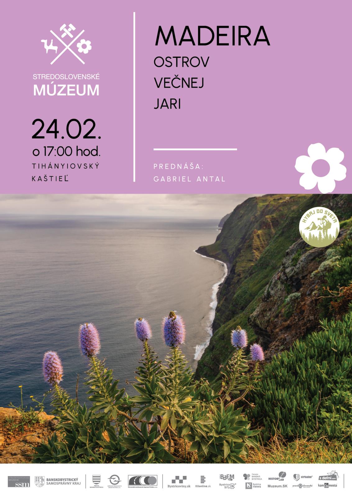 Stredoslovenské múzeum – kultúrna inštitúcia Banskobystrického samosprávneho kraja pozýva v rámci Svetového dňa sprievodcov cestovného ruchu na prednášku cestovateľa a fotografa Gabriela Antala. 24. februára o 17:00 h sa v Tihányiovskom kaštieli prenesieme na ostrov večnej jari do Atlantického oceána Madeiru.