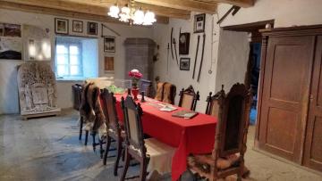 Múzeum vo dvoch miestnostiach predstavuje bohaté dejiny hradu Sklabiňa, staré meštianke a ľudové nábytky, dobové fotografie hradu, portréty majiteľov, zbrane a nálezy.