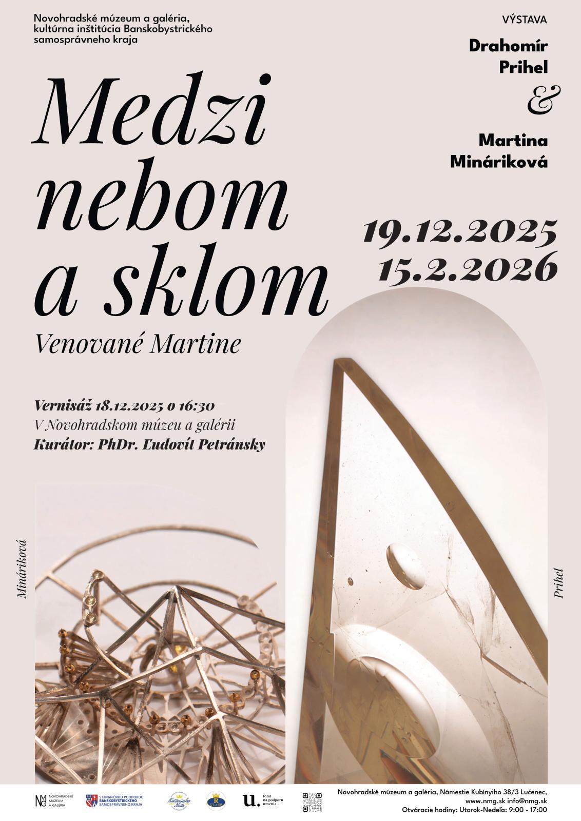 Novohradské múzeum a galéria, kultúrna inštitúcia Banskobystrického samosprávneho kraja, Vás pozýva na vernisáž výstavy „Medzi nebom a sklom“, ktorá sa uskutoční 18.12.2025 o 16:30.