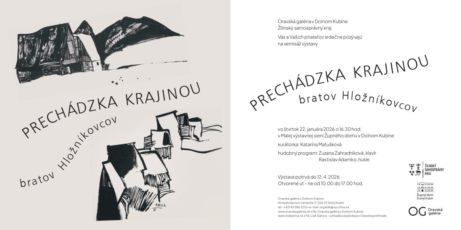 Oravská galéria otvára výstavný cyklus PRECHÁDZKA KRAJINOU, ktorý ponúka interpretáciu krajiny v dielach autorov zo svojho zbierkového fondu. Prvá vizuálna sonda približuje prienik umeleckých svetov bratov Vincenta a Ferdinanda Hložníka – dramatického expresívneho tvorcu a lyrického meditatívneho pozorovateľa.