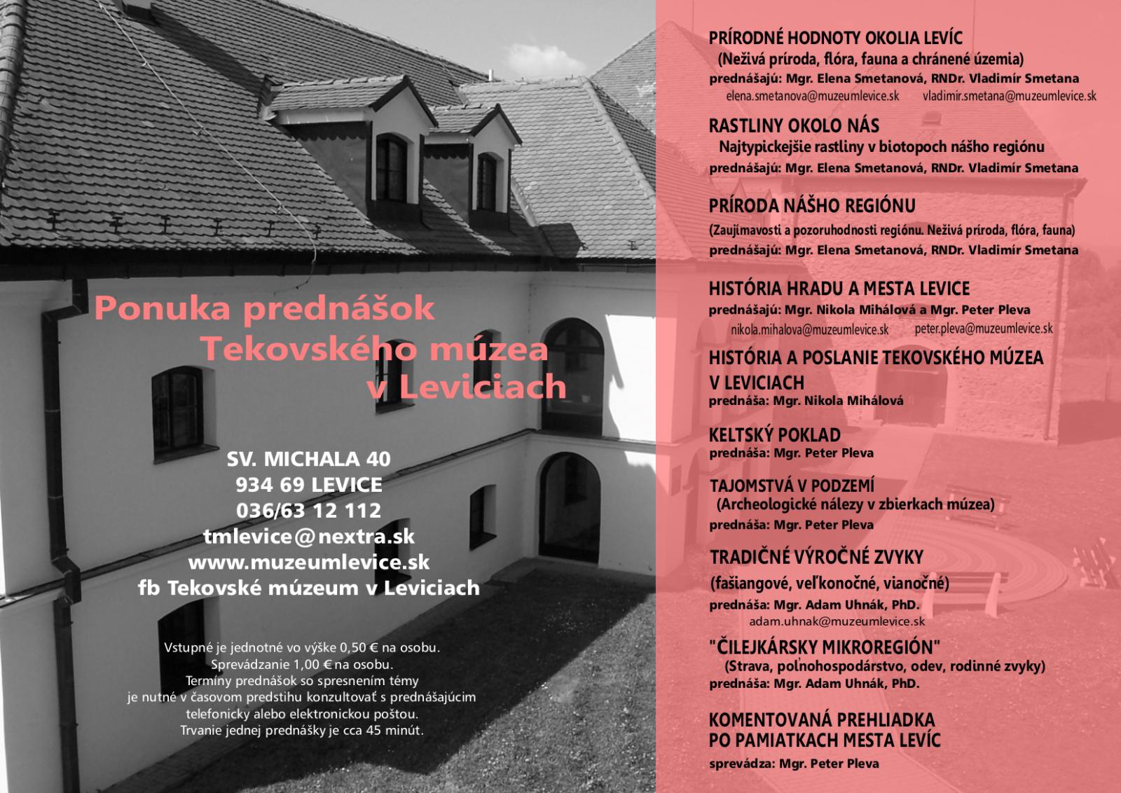 Ponuka prednášok Tekovského múzea v Leviciach na rok 2020
