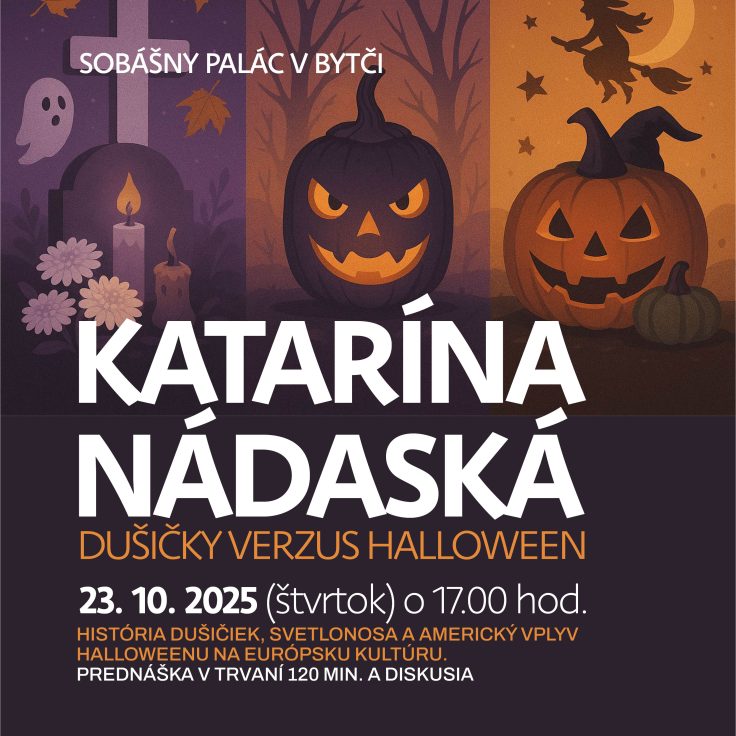 V Sobášnom paláci v Bytči sa bude vo štvrtok 23. októbra o 17.00 konať prednáška pod názvom Dušičky verzus Halloween. Povedie ju známa etnologička Katarína Nádaská, ktorá priblíži zvyky, tradície, vplyvy a fenomény našich predkov vo vzťahu ponímania posmrtného života a večnosti.